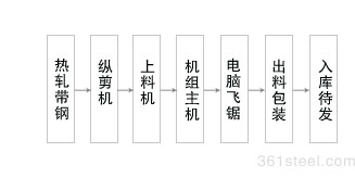 焊管,方管,矩形方管生產(chǎn)工藝流程圖如下:
