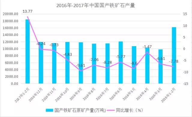 業(yè)內(nèi)人士預計,2017年我國鐵礦石產(chǎn)量將繼續(xù)走低,出現(xiàn)下降的趨勢,全年成品礦減少1000多噸左右,下降4.5%。