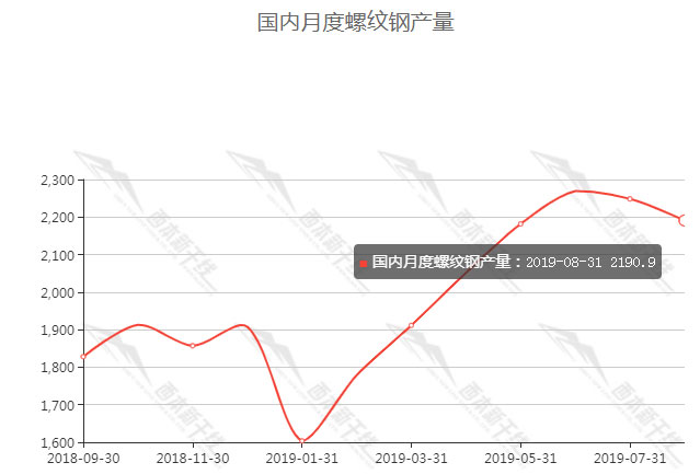 8月我國鋼筋產(chǎn)量為2190.9萬噸