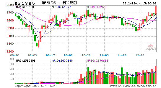本周RB1305合約延續(xù)上漲行情。對于當(dāng)前現(xiàn)貨市場,雖然市場成交量逐日下滑,但商家跌價(jià)心態(tài)不強(qiáng)。另外一年一度的中央經(jīng)濟(jì)工作會議將在本周末舉行,新城鎮(zhèn)化或出配套政策,提振市場信心。操作上建議,鑒于短期滬鋼漲幅較大,前期建議多單可考慮逢高減倉。
