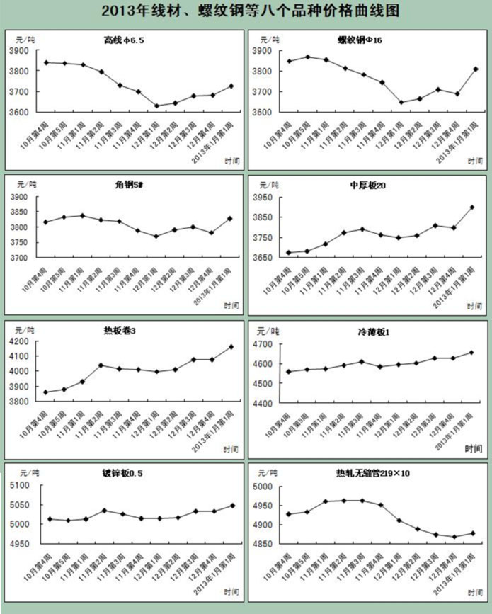 1月1日到1月6日國內(nèi)鋼材市場八個品種價格和指數(shù)